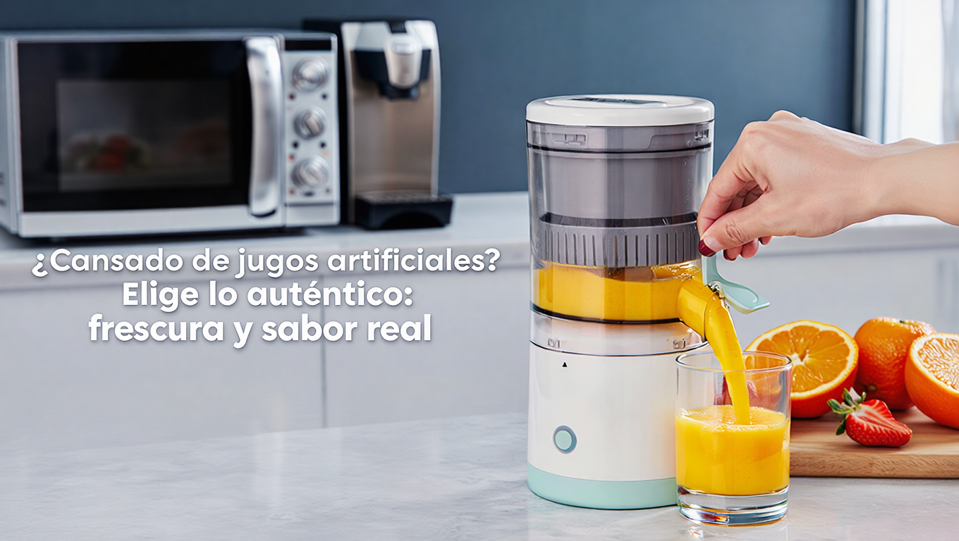 Con el Exprimidor Eléctrico Portátil disfrutas de jugos auténticos, ricos en vitaminas y sin aditivos dañinos, ¡donde quieras y cuando quieras!